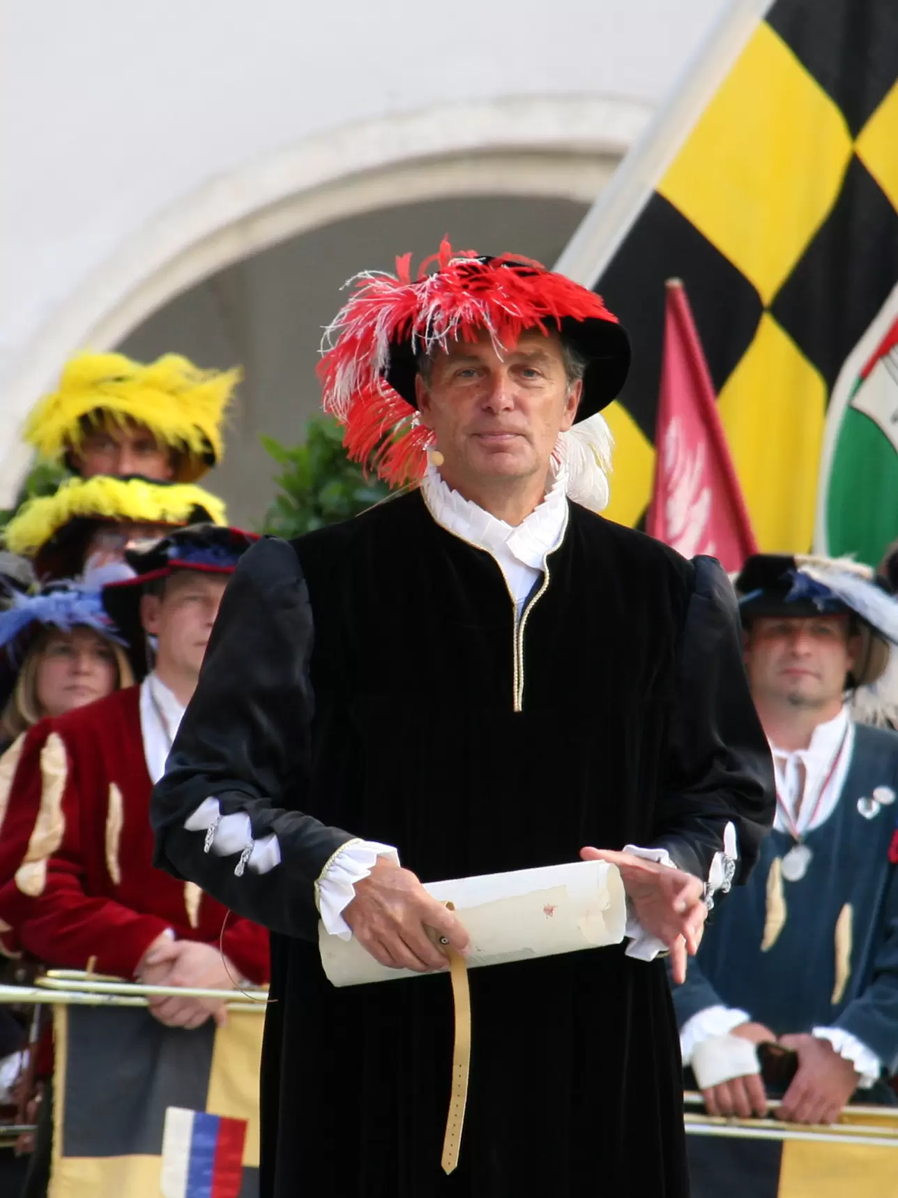 Truchseß Gundolf Hunner Der Truchseß eröffnet und erklärt den Neuburger Steckenreitertanz.Der Truchneß war der obersten Aufseher über die fürstliche Tafel und den Vorsteher der Hofhaltung.Im Wandel der Zeit erhielt das Amt weitere einflussreiche Funktionen.